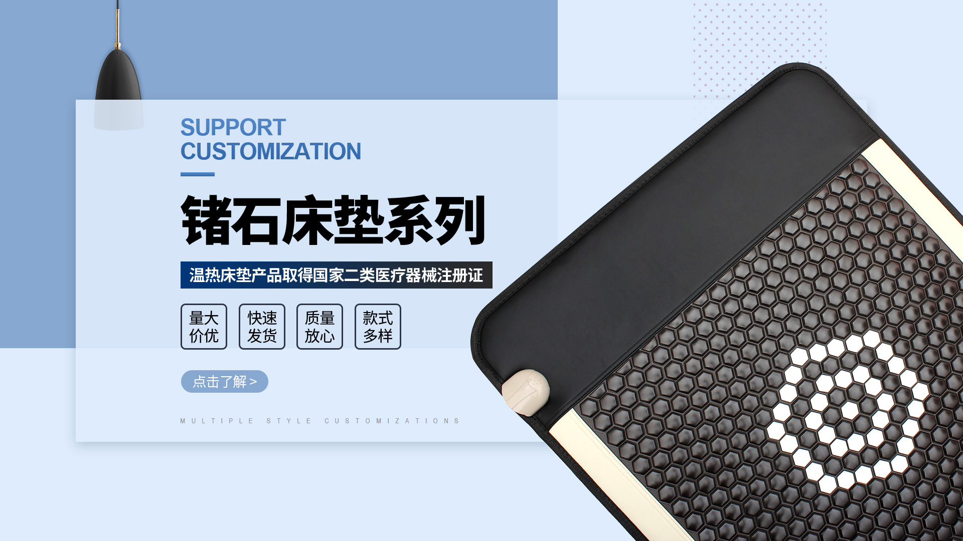 現(xiàn)主要產品有玉石床、溫熱玉石床墊、溫熱鍺石床墊、溫熱坐墊、溫熱靠背及多種玉石保健制品等